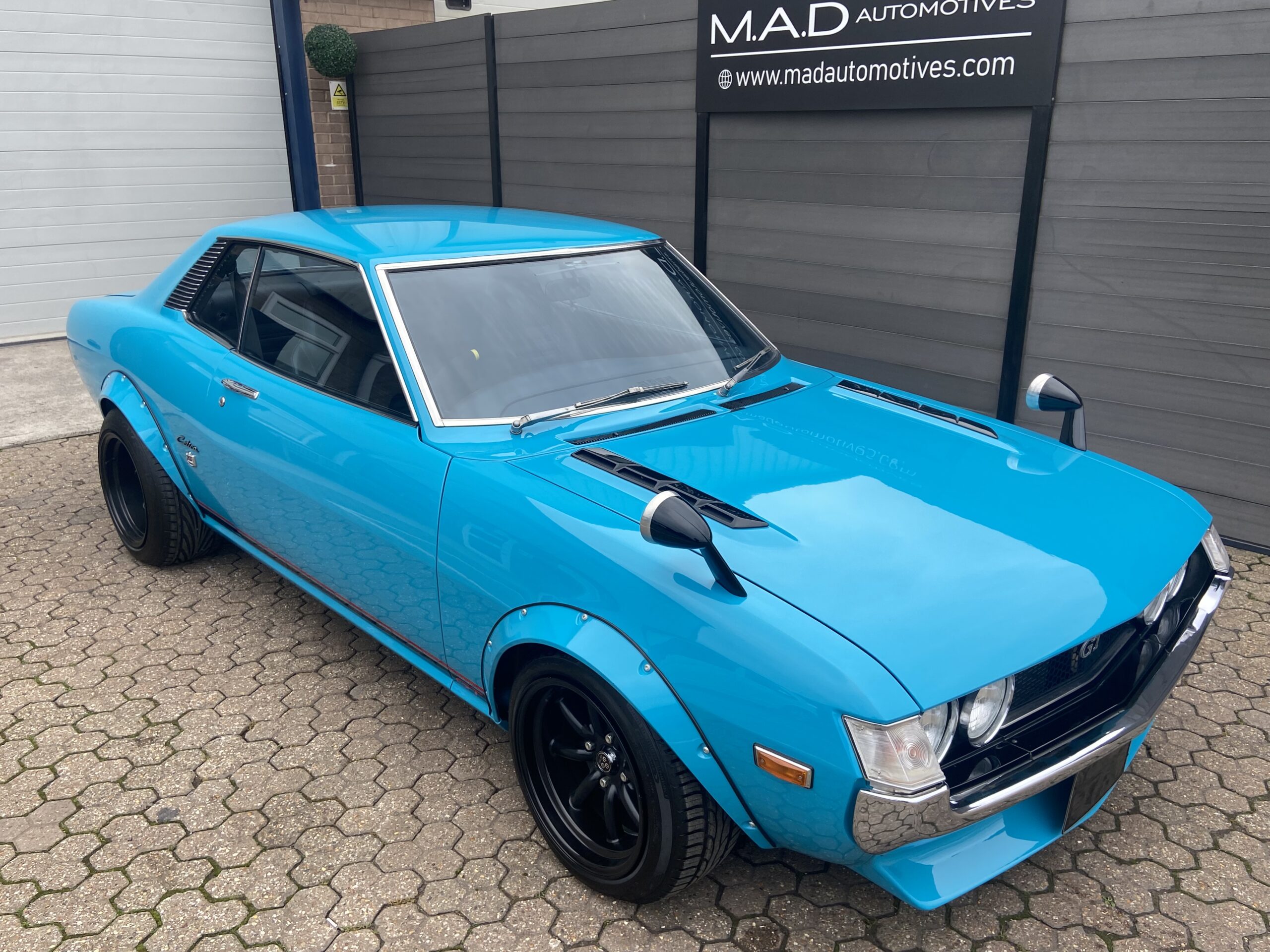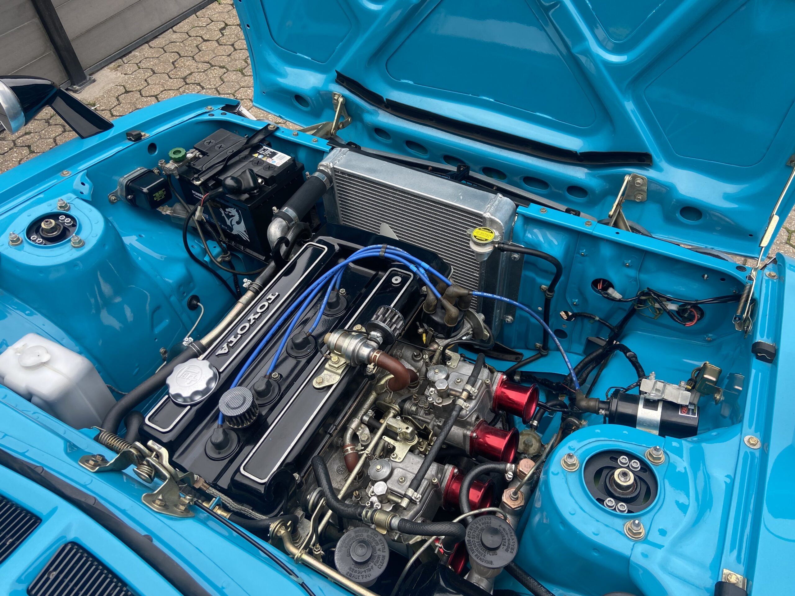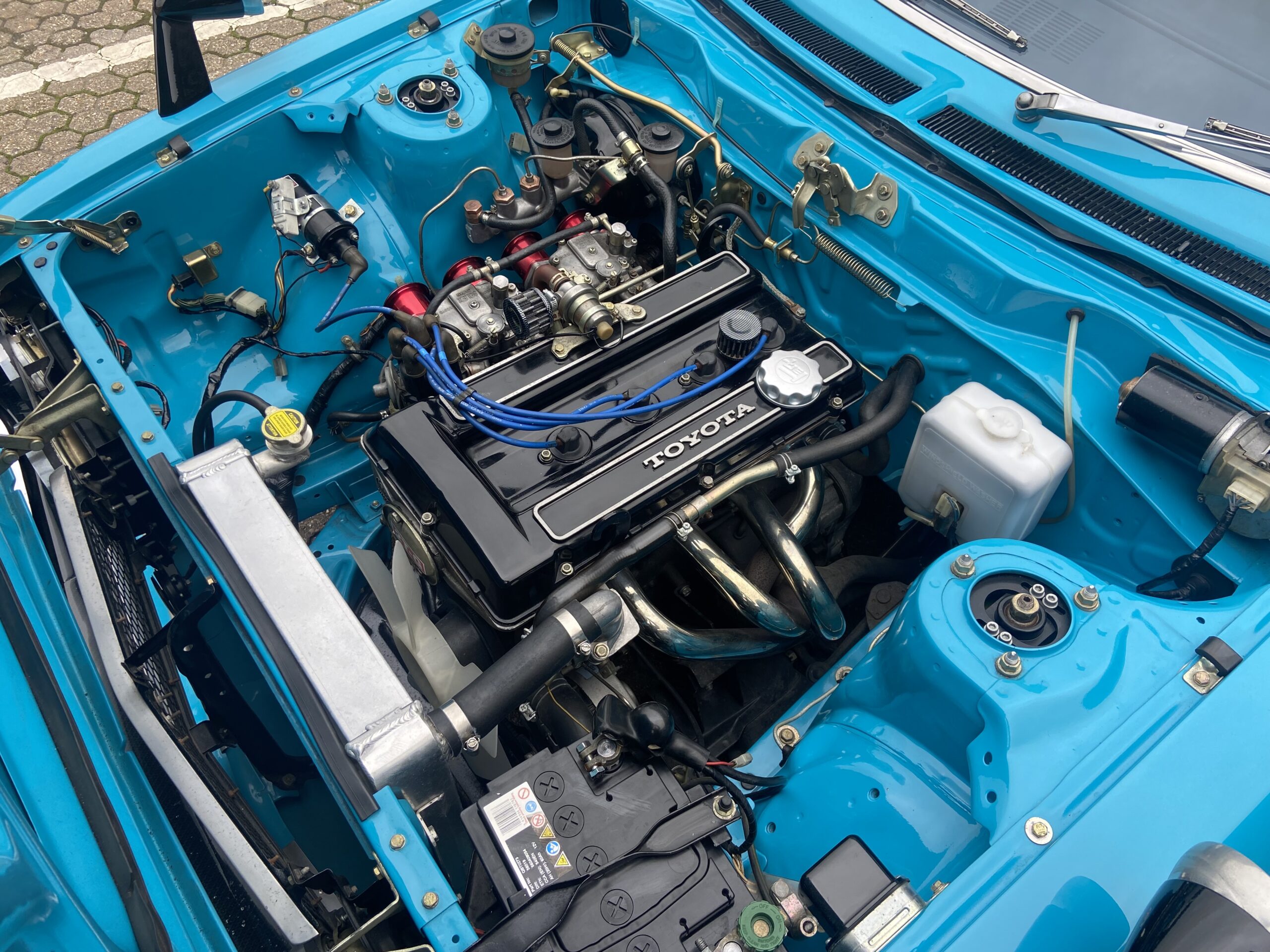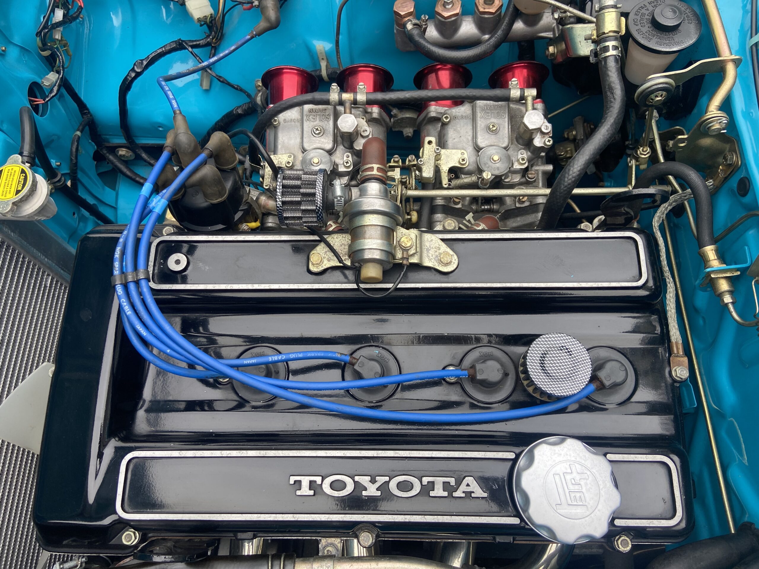 Lightly modified with wide arches, a deep chin spoiler, 15″ Alloys with 195’s front & 225’s on the rear, Coilover front suspension & Bilstein rear shockers and lowered springs. All suspension components were either re-bushed, powder coated and re assembled or replaced, The 2TG engine was fully rebuilt using genuine Toyota parts, the engine displays perfect oil pressure and starts and runs beautifully on the original Twin 40 Carbs which were fully stripped and rebuilt. As well as an aluminium 3 core radiator, a custom 4 branch manifold and full stainless steel exhaust were fitted and all the engine ancillaries were replaced too. The braking system was totally rebuilt, including new copper brake pipes, flexi’s, wheel cylinders, grooved/drilled front discs, cables, rear drums/shoes, brake master cylinder and servo. The original 5 speed Gearbox is perfect and the Clutch was replaced.