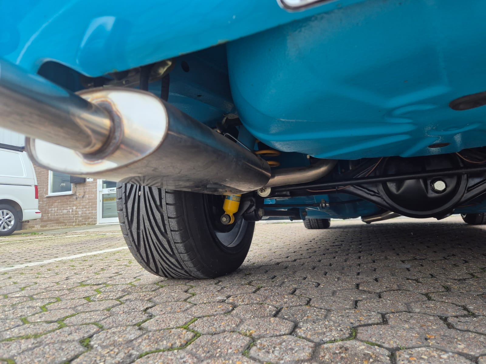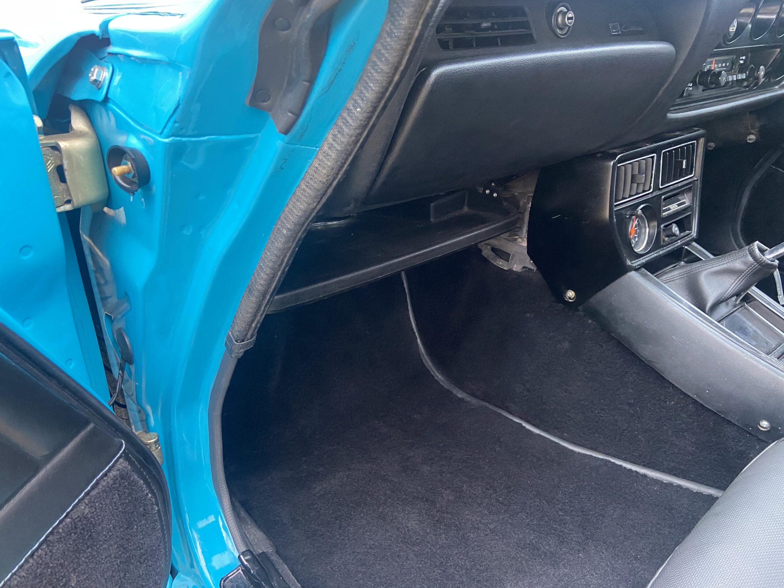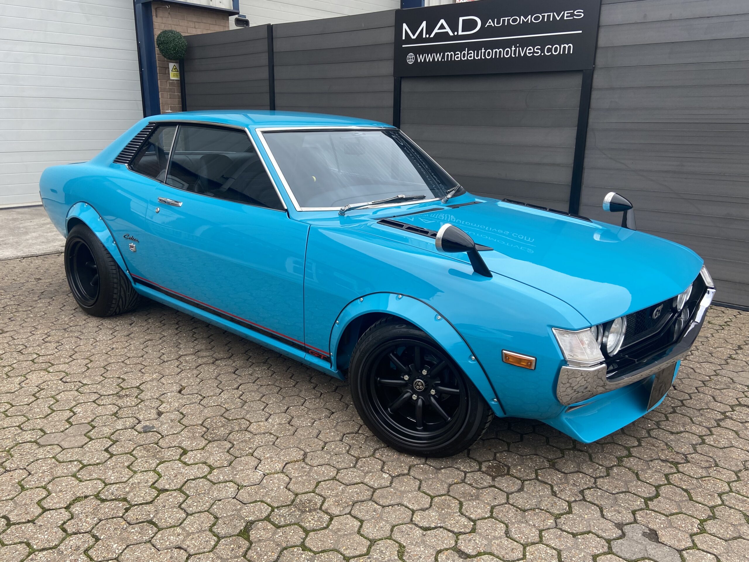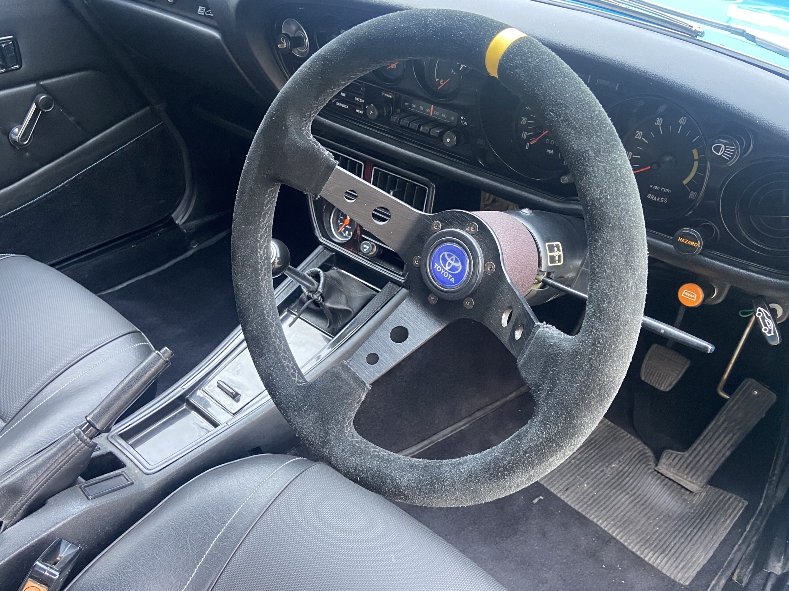 Lightly modified with wide arches, a deep chin spoiler, 15″ Alloys with 195’s front & 225’s on the rear, Coilover front suspension & Bilstein rear shockers and lowered springs. All suspension components were either re-bushed, powder coated and re assembled or replaced, The 2TG engine was fully rebuilt using genuine Toyota parts, the engine displays perfect oil pressure and starts and runs beautifully on the original Twin 40 Carbs which were fully stripped and rebuilt. As well as an aluminium 3 core radiator, a custom 4 branch manifold and full stainless steel exhaust were fitted and all the engine ancillaries were replaced too. The braking system was totally rebuilt, including new copper brake pipes, flexi’s, wheel cylinders, grooved/drilled front discs, cables, rear drums/shoes, brake master cylinder and servo. The original 5 speed Gearbox is perfect and the Clutch was replaced.