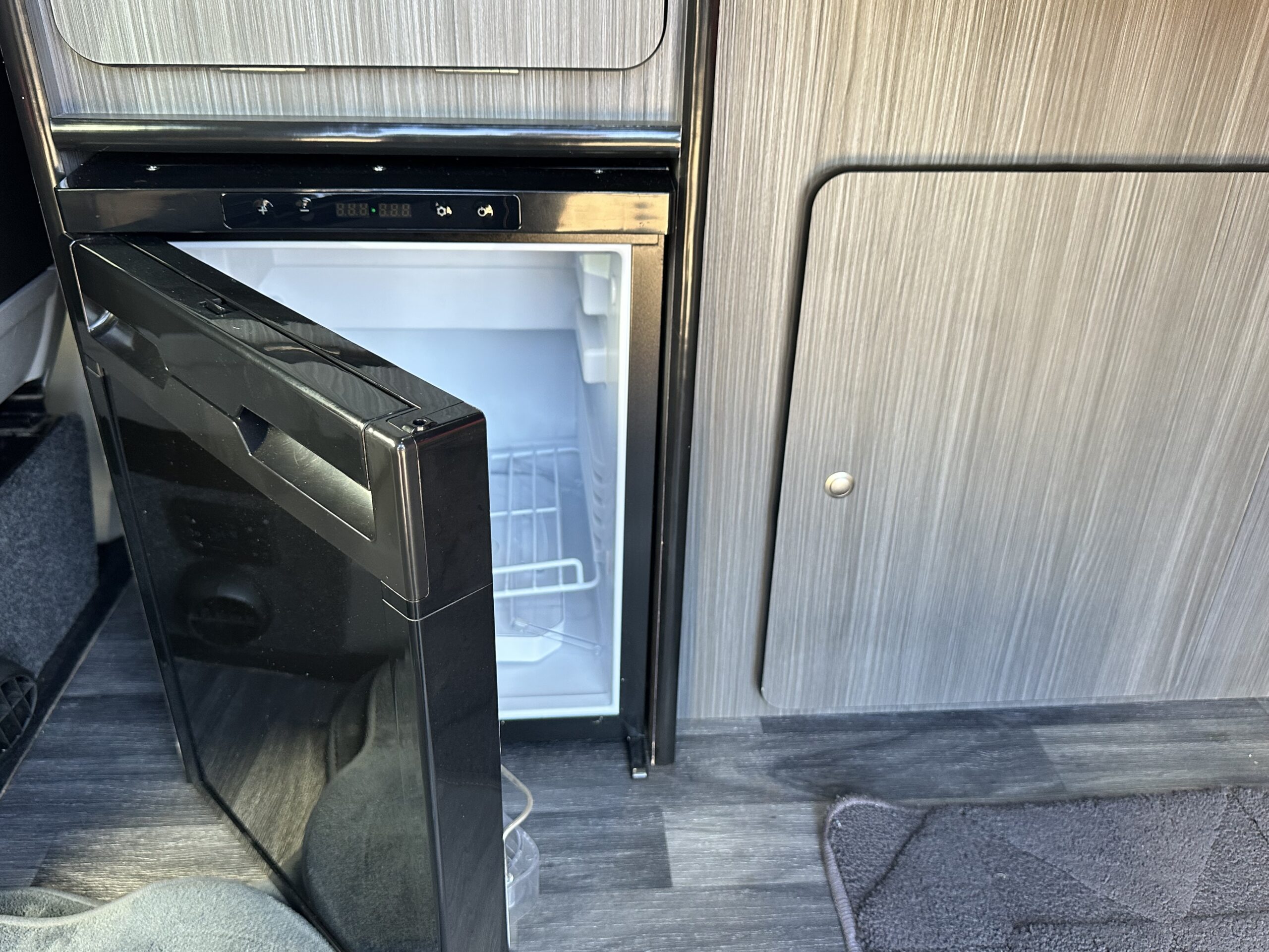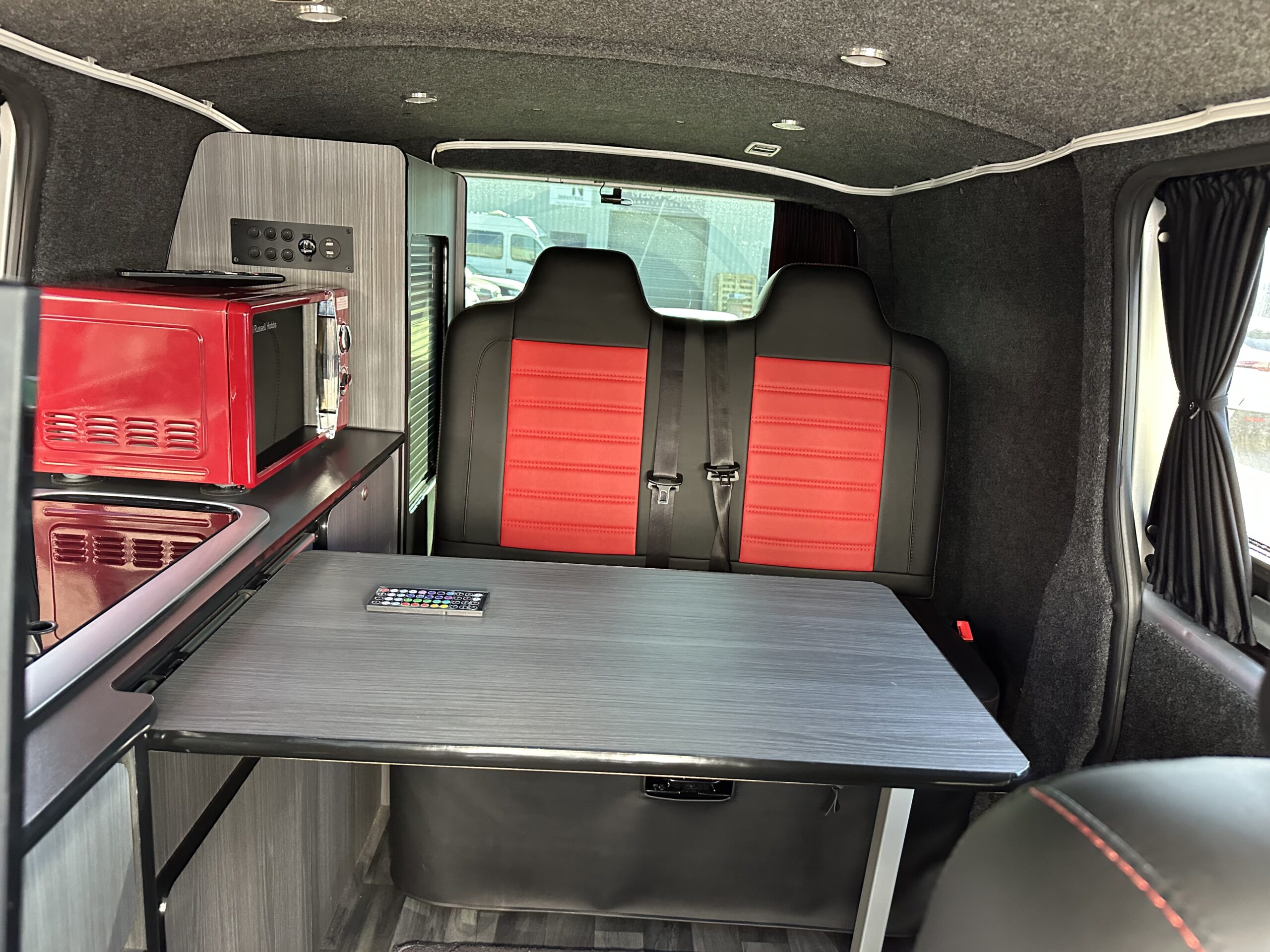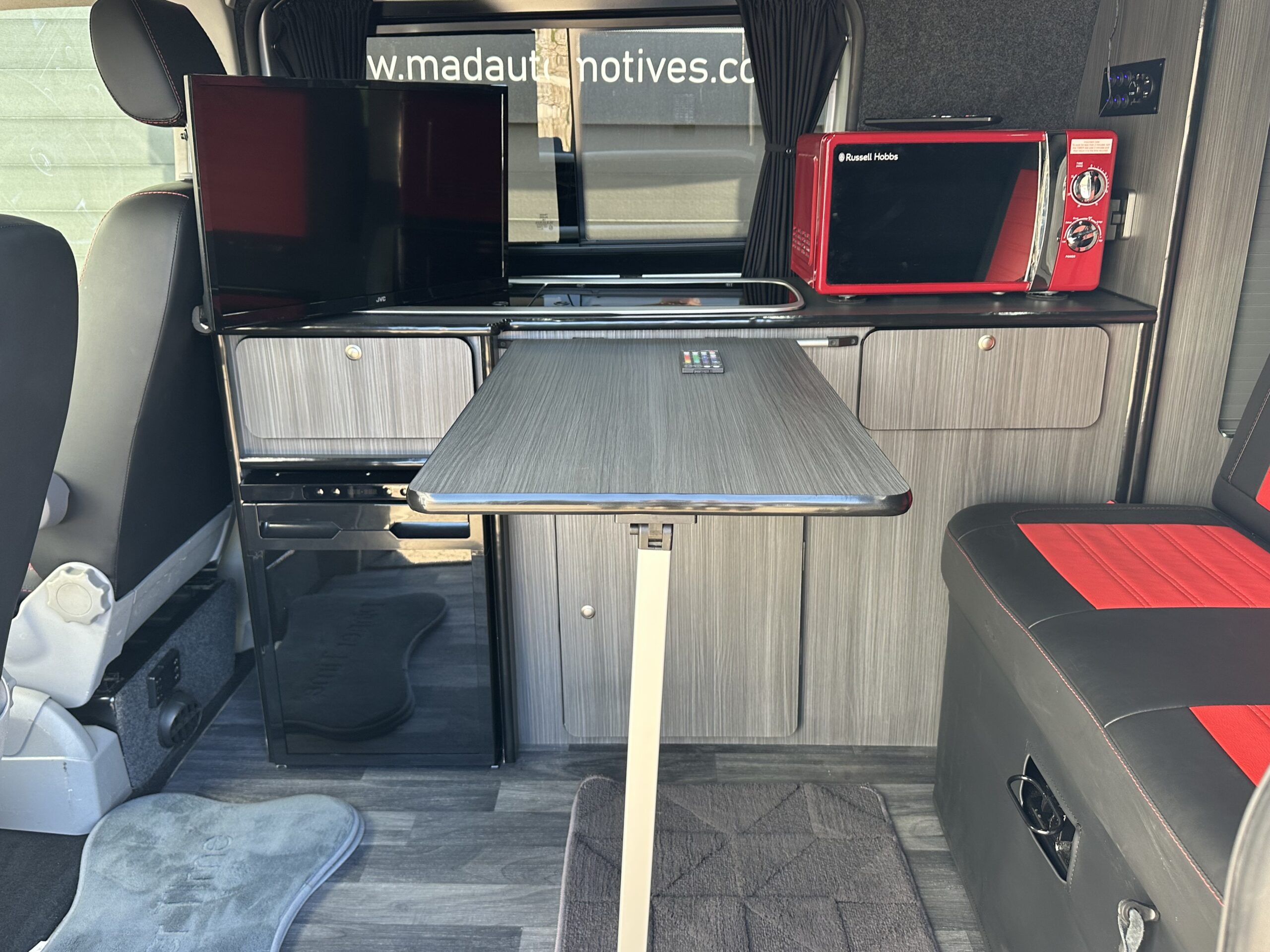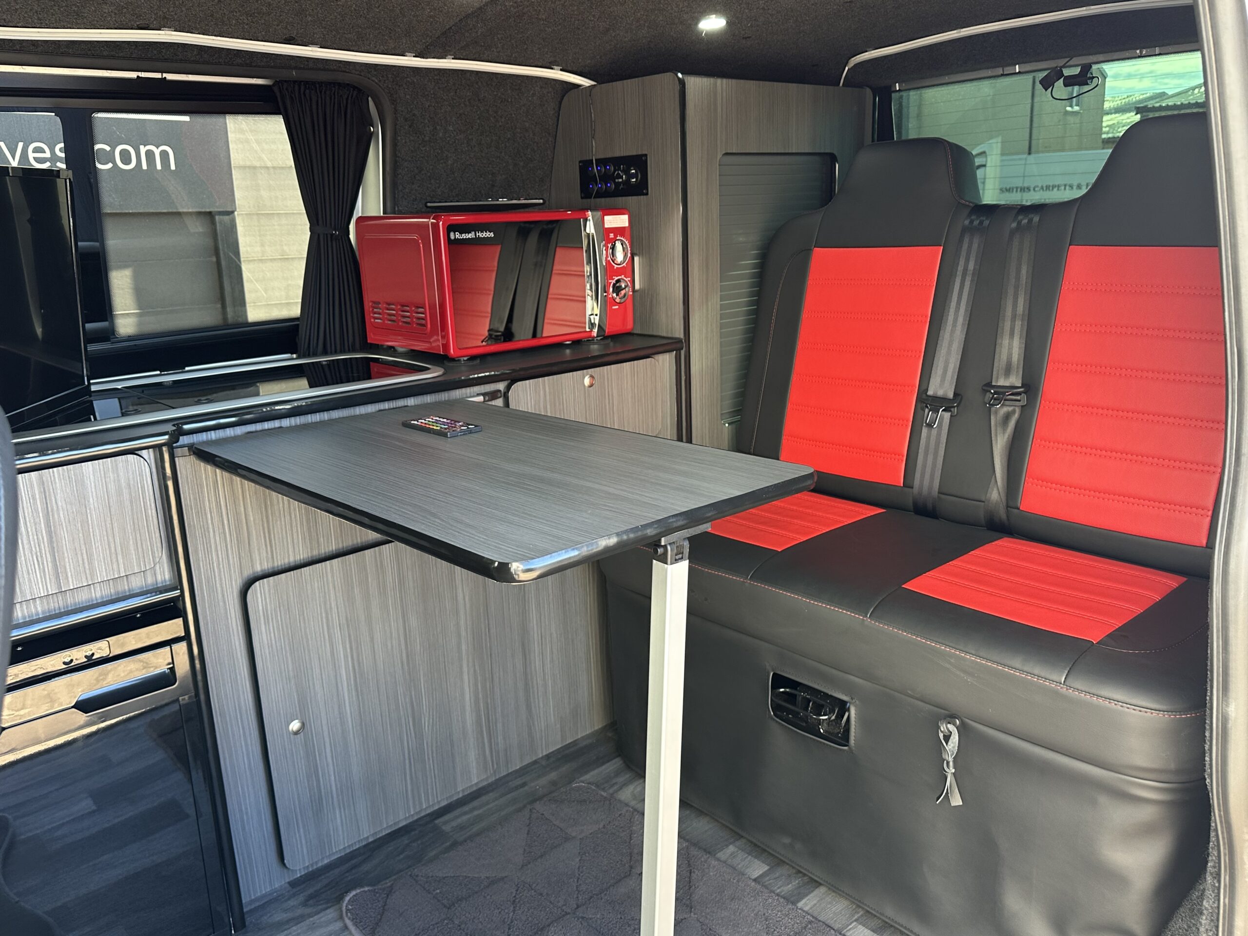 High end spec with quality finishes throughout. Featuring on entry, a Kitchen, equipped with a Dometic twin burner gas hob & sink combo and 12v compressor fridge with freezer compartment. Convenience is met by the swivel passenger seat, creating a space for up to 4-5 people to dine. By night, you have the brand new Rock n Roll bed for 2 to sleep. M1 tested, the fold down Rock n Roll bed, makes a comfortable double, completing the sleeping set up and reverting easily to two belted seats for travelling. For storage, you have lockers, under bed and passenger seat spaces, with large tambour screen cupboards for larger items. For those cooler evenings, a blown air diesel heater is installed for extra comfort. This camper comes with a leisure battery and Solar panel for Off grid stays with inverter for 240 Hookup. Full van information: VW T5.1 T32 SPORTLINE Kombi Van Bi TDI 180150K miles but with FSH and recent Cambelt, Reflex Silver Metallic, Full leather interior, 6-Speed Manual Gearbox, 4 Belted Seats, 18 inch Black Alloy Wheels with all brand new tyres, Front & Rear Parking Sensors, Reverse CameraTow BarCruise Control Air Conditioning Heated SeatsSwivel Passenger Seat With Storage / Slides For Dining, Radio / Bluetooth Connectivity with Apple Carplay, 12v Socket, Driver & Passenger Airbags, Front Foglights, Metal Sidesteps, Full Leather interior, Camper and converted features: Kitchen / Dining Area For 4 People With Fold Away Table & Passenger Swivel Seat, Dometic Twin Gas Burner Hob & Sink Combo, Water Pump Under Sink, Compressor Fridge & Freezer Compartment 12v, Fold Down Double Bed (M1 Tested), Storage Under Rear Seats & Cab Passenger Seat With Cupboard Space Throughout, Traveller Digital TV 12v, Van X Privacy Blackout Curtains, LED Lighting, Dedicated Leisure Battery maintained by Solar Panel, CBE Power Supply Unit Control Panel, 230v Mains Socket & USB Points, Diesel Blown Air Heater, Dedicated Cupboard for Gas Bottle storage, Mains Hook Up 230v, Leisure Battery.