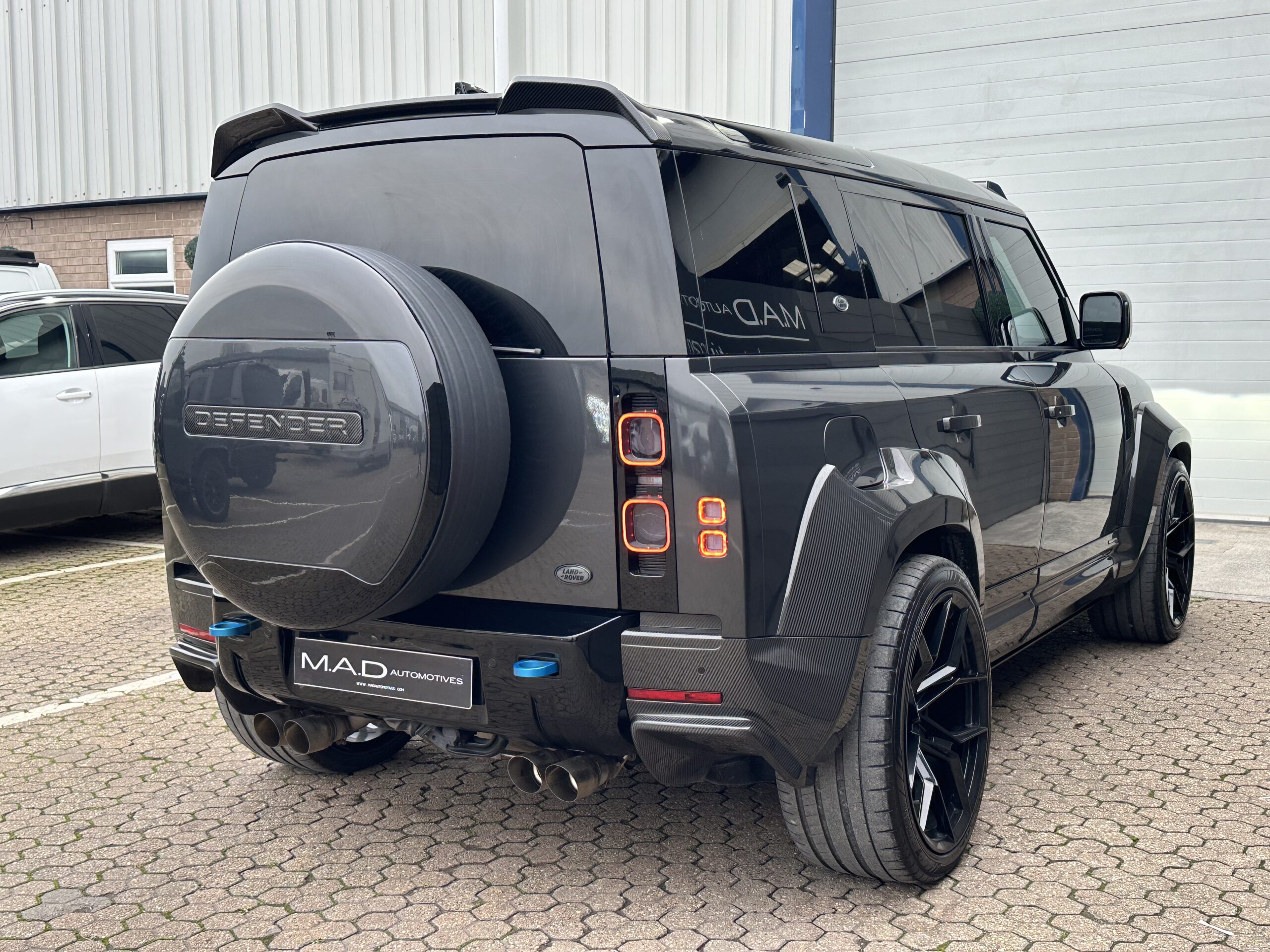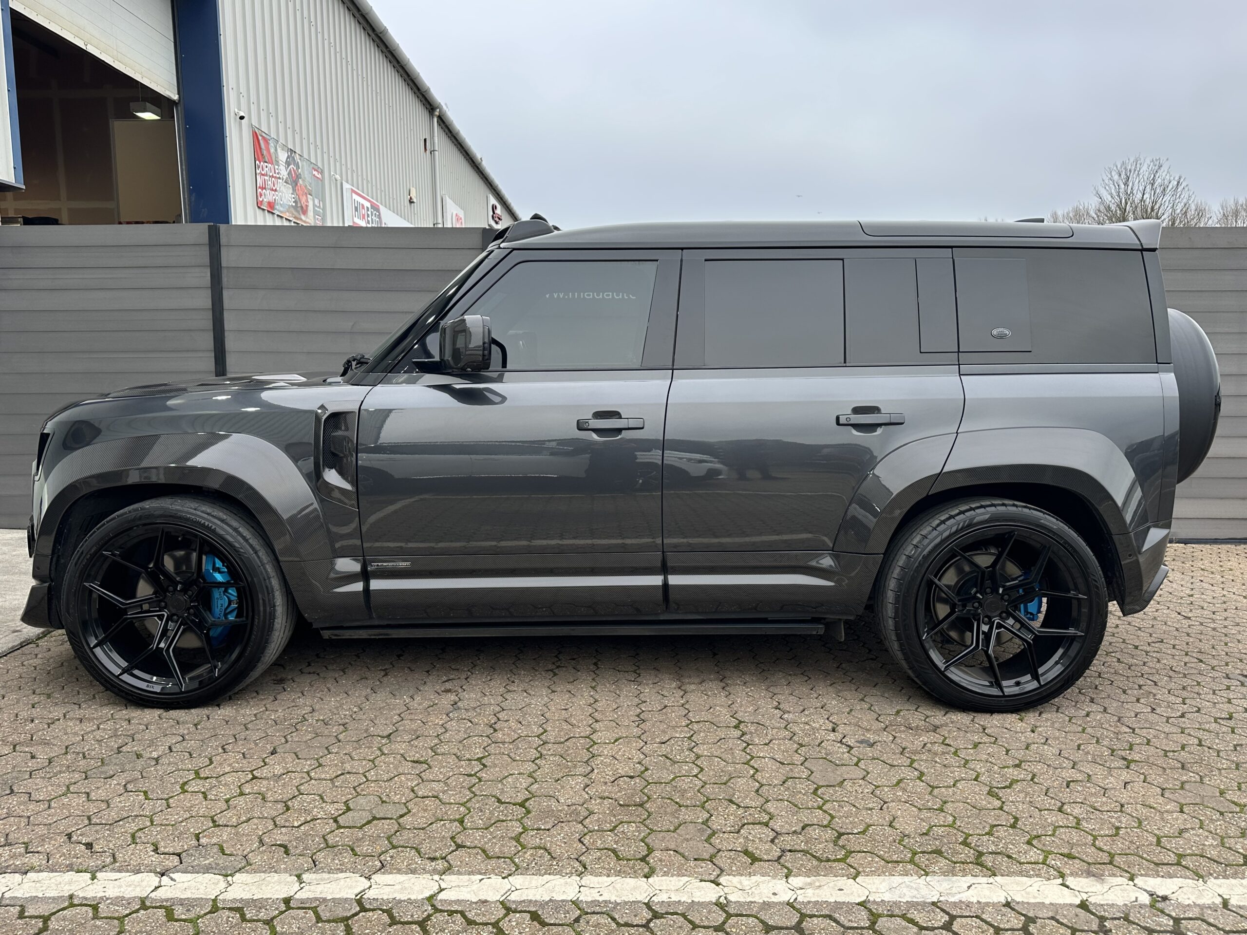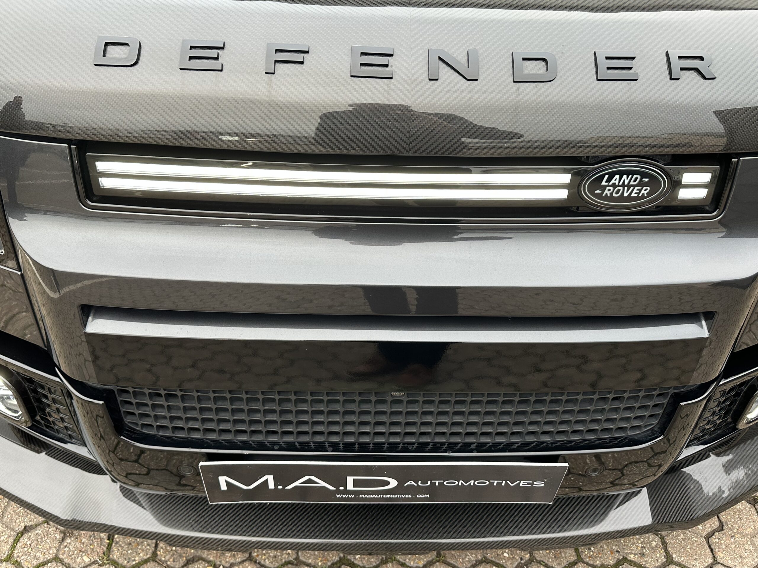 Based on a 2021 V8 P525 110. Finished in Carpathian Grey metallic with full exposed Carbon Fibre body package including front bumper and splitter, Vented Carbon Fibre Bonnet, Rear Carbon spoiler, Carbon side mouldings and extended wheel arches. It has covered just 24,000 warranted miles and benefits from full Land Rover service history.