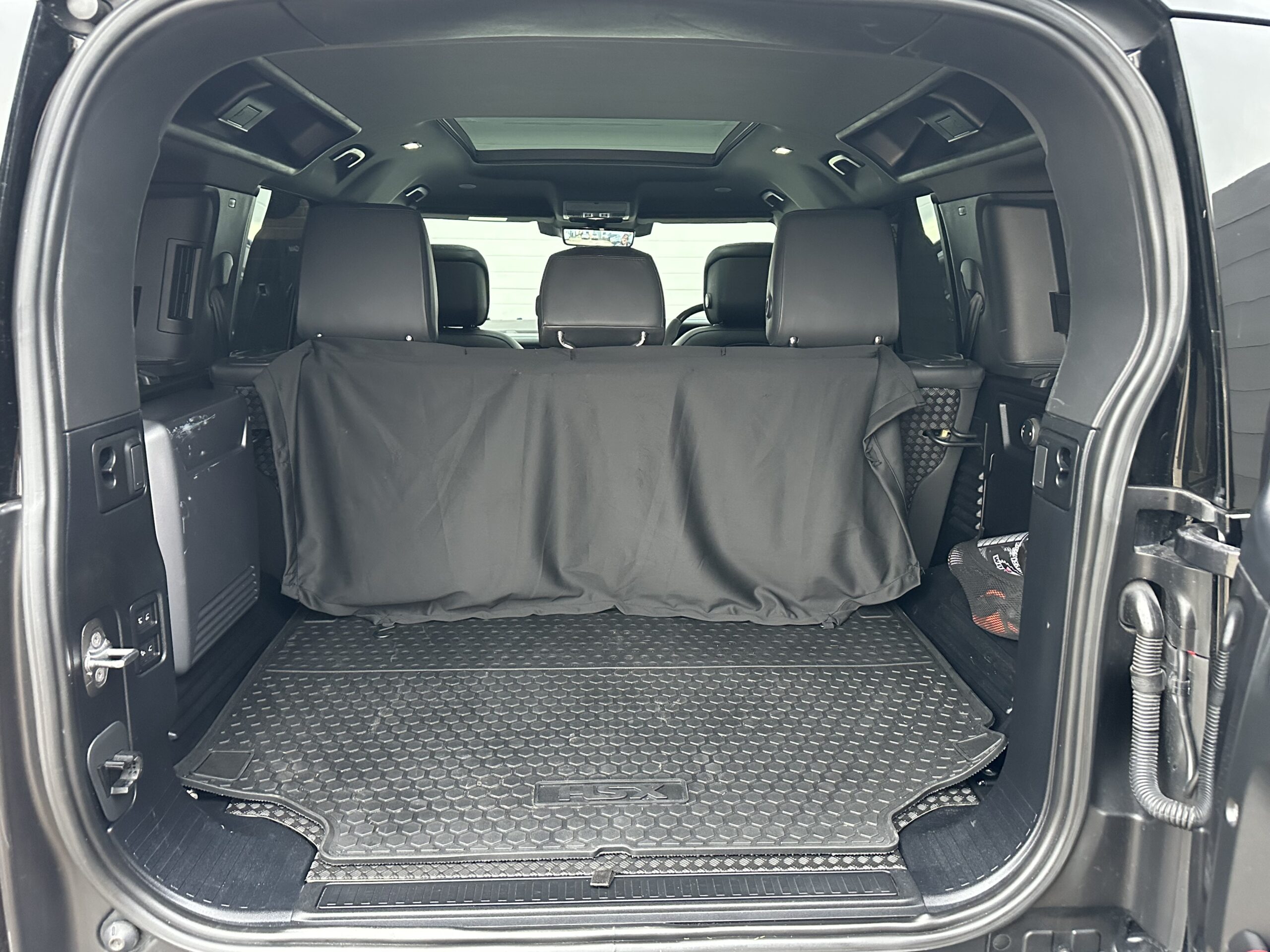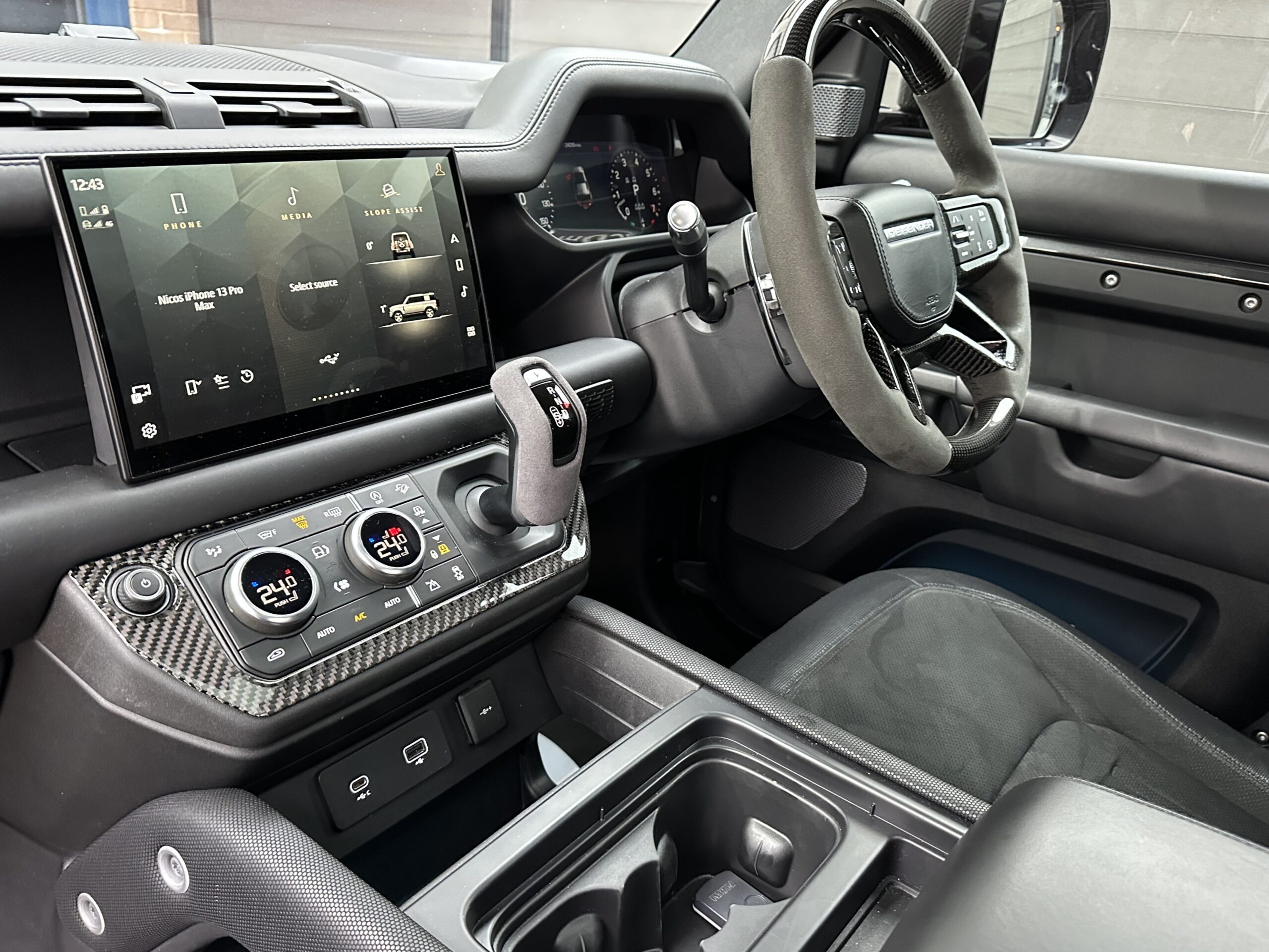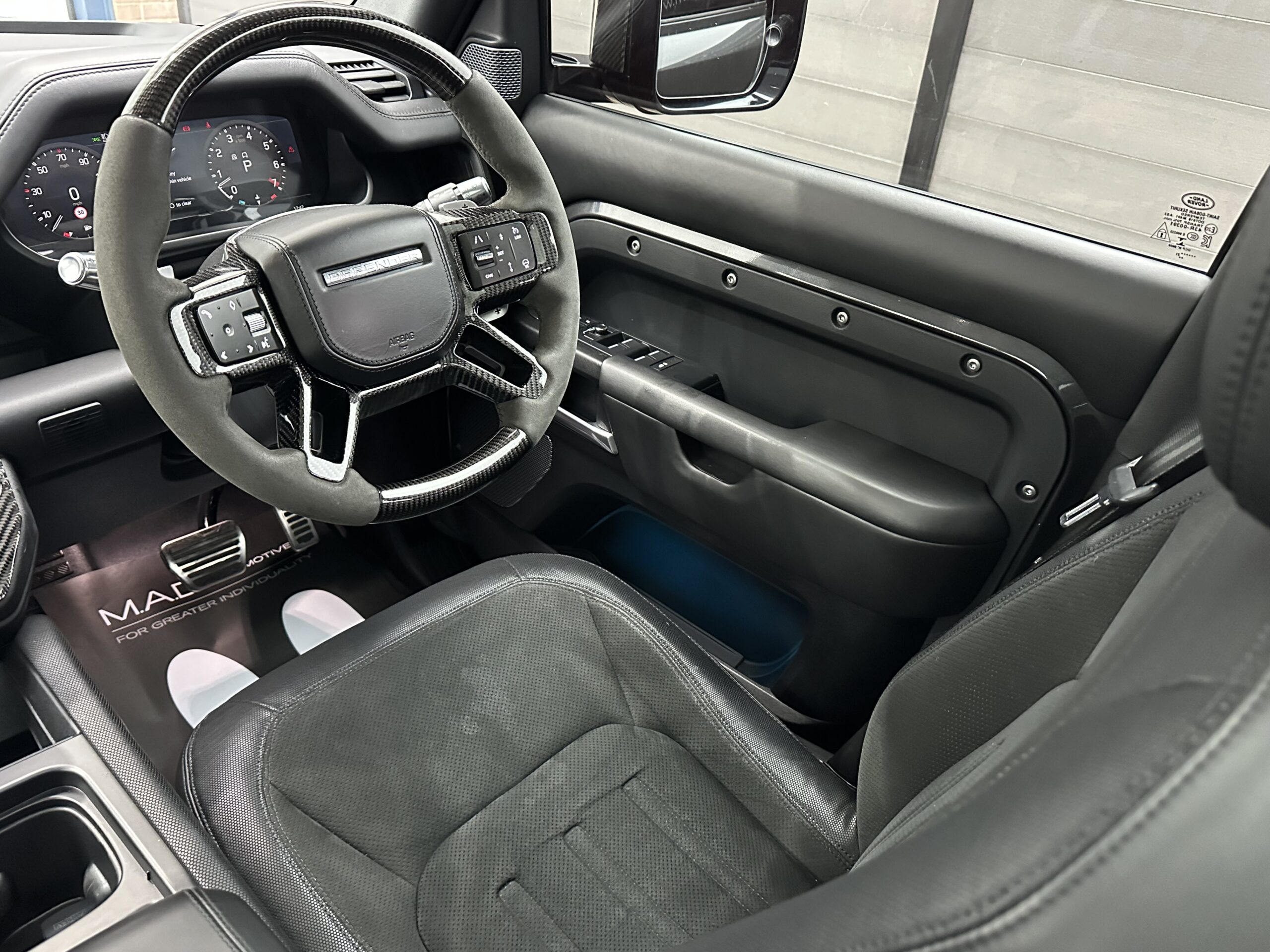 Based on a 2021 V8 P525 110. Finished in Carpathian Grey metallic with full exposed Carbon Fibre body package including front bumper and splitter, Vented Carbon Fibre Bonnet, Rear Carbon spoiler, Carbon side mouldings and extended wheel arches. It has covered just 24,000 warranted miles and benefits from full Land Rover service history.