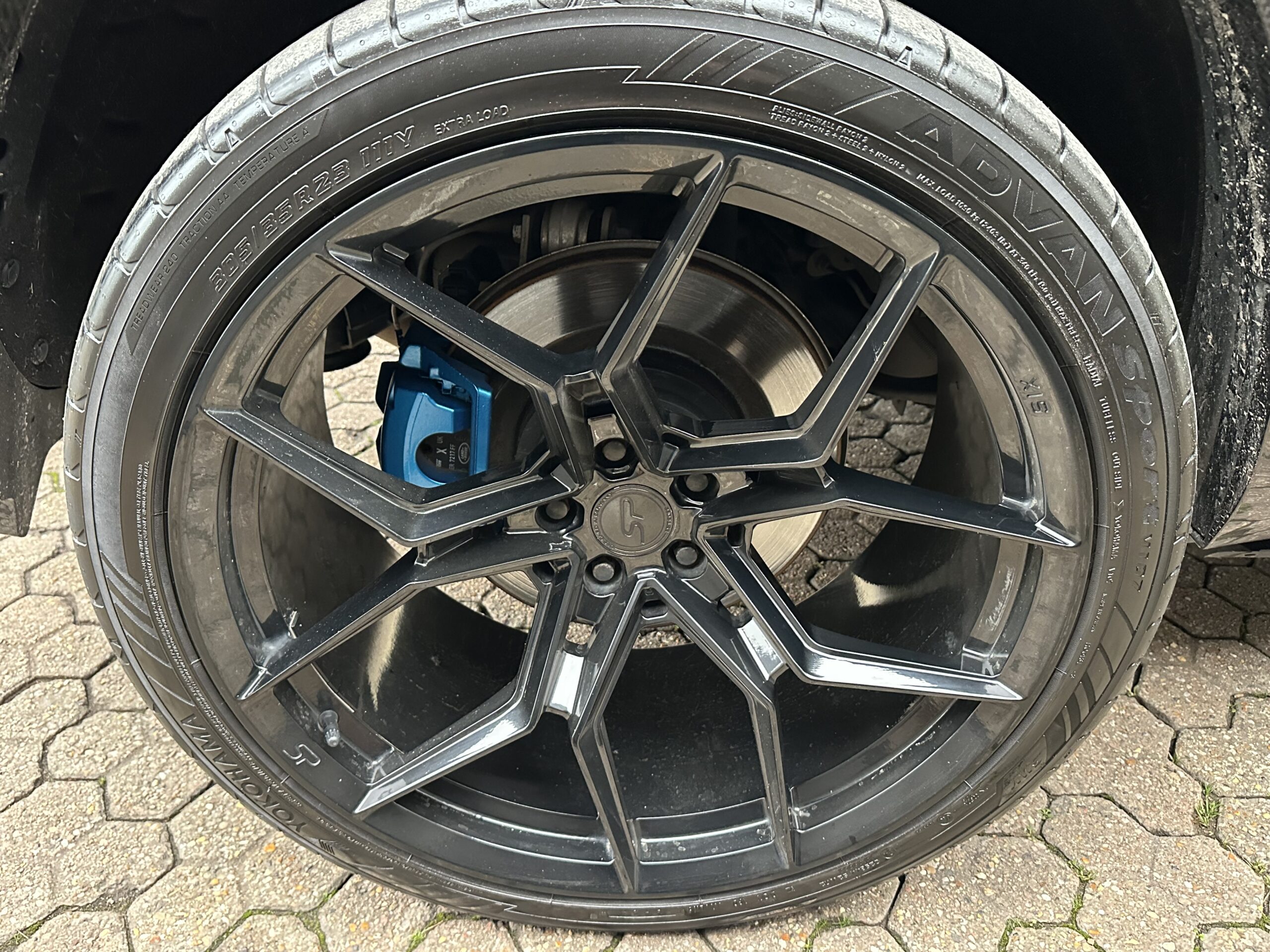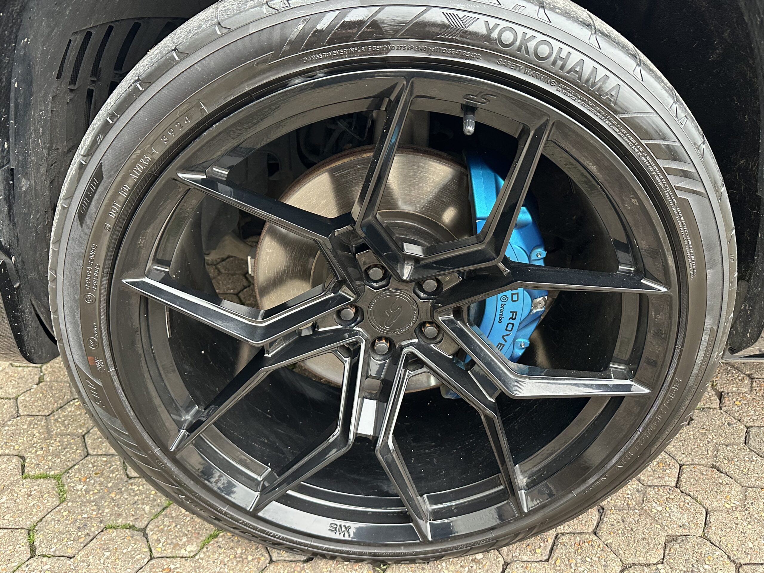 ● 23″ SP Racing Forged gloss black alloy wheels with new Yokohama tyres all round,